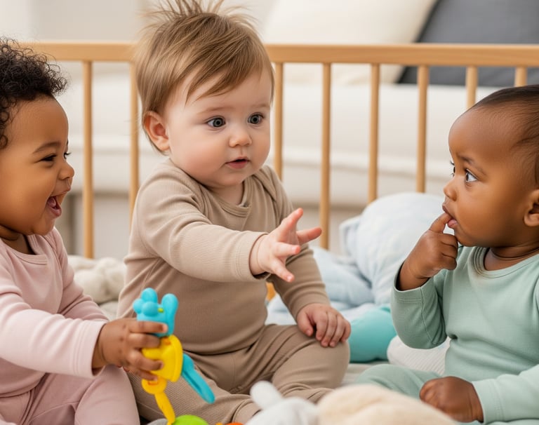 O balbucio ganha mais forma: sons como “bababa” e “dadada” surgem. A criança começa a reconhecer palavras simples e pode dizer a tão aguardada primeira palavra — geralmente entre 10 e 12 meses.